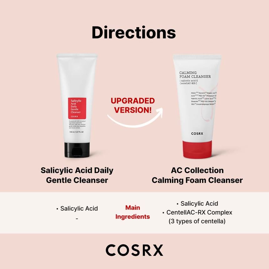 Benefits: Cleanser's soft and rich foam purifies pores and clears skin of dirt, excess sebum and dead skin cells. Contains 5,000ppm of salicylic acid to gently exfoliate and cleanse skin, and CentellAC-RX Complex (made of three types of centella asiatica) to soothe irritated skin. Refreshing cleansing foam treats acne and calms sensitive skin for its clear appearance. Clinically tested for skin irritation.